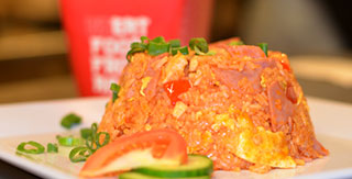 | L8 | Nasigoreng * Stekt ris med skinka, kyckling, räkor, ägg |